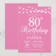 Inbjudan till 80-årsfirande med strängljus. Rosa bakgrund. Kvinnor Dam Elegant Modern födelsedag. 13:e 15:e 16:e 18:e 20:e 21:a 30:e 40:e 50:e 60:e 70:e 80:e 90:e 100:e, Alla åldrar. För ytterligare anpassning, klicka på "Anpassa"-knappen och använd vårt designverktyg för att ändra denna mall.