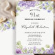 Denna eleganta elfenbensvita, lavendel-lila och salvia-gröna blomsterkant inbjudan till 91-årsdag är perfekt för en elegant födelsedagsfest. Denna design har en akvarellblommig ram och är ett fint feminint val för en speciell händelse för att fira en milstolpe födelsedag.