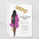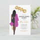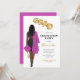 Afrikansk kvinnlig Studentfest Inbjudan till kvinnlig rosa Kvinna porträtt teckning svart klänning, rosa och grå, långa hår av mörk. Brev i faux-guld-folie-stil-ballonger. Anpassa med information om studentfesten och student-klassåret och namn Skicka ett meddelande till mig om matchande artiklar.