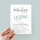 Den här inbjudan till babyduschen har en modernt, minimalistisk typografi som lagts till med en enkel könsneutral stam av blek blå grönt löv. Använda designen verktyg för att lägga till information om babyduschen party eller anpassa dig till kostym för ditt evenemang.