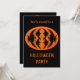 Den här Halloween fest-inbjudan innehåller en orange oval med sex kråkor. Varje kråka har gult ögon med svarta elever och utsträckt vingar. Kråkorna flyger mot varandra och bildar en ovalform. Inbjudan är svart på båda sidor. Utformningen visas längst fram i inbjudan och du skriver in all information om party på baksidan i texten med grå orange.