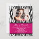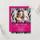 Inbjudan till Anpassningsbar Zebra-partiet i mode, Underbar för alla åldrar och år! Anpassa den här snyggten till inbjudan med ditt namn, din bild, din ålder och din party-info. Toppen ultra-shock rosa med svartvit zebra ränder och feminin skript. Använda det för din 21:a födelsedag, eller vilket år som helst!