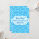 Det är en pojke! Den här snyggtens blåa damminbjudan är en underbar babydusch. Sofistikerad och stollig, den här inbjudan innehåller en blå damm på en blåblå bakgrund med lager. Ett ljusblått motiv sitter på en ljusblå remsa och ger ett område att anpassa. Anpassa baksidan med datum, ställe, OSA och registrerade arkiv. Bakgrunden på baksidan är också dammkonstruktionen med emblemet i en större storlek för duschdetaljer och information. Helt anpassade för din dusch party. Det här fuktmönstret är originalkonstverk av Phyllis Dobbs och koordinerar med andra produkter i den här butiken.