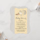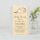 Snyggt barnduschinbjudan utförd i en blek gyllene gult, med en gyllene gult på ljust grått star mönster, som springer ner på båda sidor. Bilder av en stork som flyger med en bunt av baby, dekorerar toppen av inbjudan. Anpassa mörk-grått-texten för din barnduschhändelse. Inbjudan till mamma kommer att bli hjärtlig.