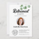 En enkel vit bakgrund med vattenfärgsfärgade löv i det övre hörnet av högerna och fotot som du vill anpassa. Du kan sätta ett foto på baksidan av inbjudan från dig och dina kolleger, vänner osv.