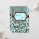 Inbjudan till Aqua Blue Brown White Stripe Damask