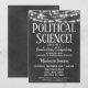 En rolig svart-vit kritskrifts-inbjudan till avslutningsfest för politices studerande med lysande ljus längst upp.
