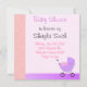 En söt babyduschinbjudan med en lila baby-buggy med en rosa filt. En gräns av rosa stjärnor. Perfekt att lämna ut till vänner och familj för att duscha ditt barn.