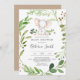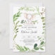 I inbjudan med vår elegant och med den moderna inbjudan till babydusch i baby finns grönt eukalyptus-garland och vattenfärgssafari-djur. Anpassa med babyduschdetaljer i enkel layout och handskrivet stil-teckensnitt för elegant.