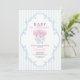 Välkomna din lilla med elegans och charm med hjälp av Baby i Bloom babyduschinbjudan. Designad med mjuka blommigtar för rosa av vattenfärger i ett klassiskt blått vas, en ljusblå strimlad bakgrund och förfinad typografi, ger den här inbjudan dig en tidlös skönhet till firande. Perfekt för trädgårdsmatade duschar eller elegant vår-duschar.