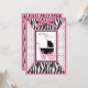 Boutique stil zebra och prick med shock rosa och ett inbjudningskort för babydusch i baby.
