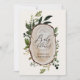 Rustic wood slice babydusch inbjudan. Med vackra vattenfärgade blad, vita blommigtar, träsegment och manuskript. Detta moderna party inbjudan kommer säkert att sätta stil för ert kommande party.