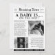 En charmig dagstidning-stil-babydusch inbjudan med två bilder av anpassadet i klassiskt svart och vitt. Innehåller ett avsnitt med information om händelser (datum, plats, OSA) och ett stycke med uppriktig "Väntar på Baby" för att din glädje på ett tidslöst, personligt sätt.