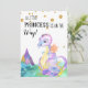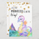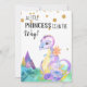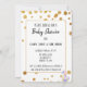 Den här drakondesignen för babyduschinbjudan har en söt dinosaurier/drake med en bakgrund av magiska guld-konetti-prickar och magiska berg.
