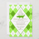 Börja din fest på rätt sätt med vår söta Preppy Alligator bebis-födelsedagsinbjudan med en grön-vit argyle-mönstrad bakgrund. Anpassa med din information och du är redo! Matchande artiklar som bebis-födelsedagsfrimärken, presentetiketter, tack-kort & tack- etiketter finns också i vår butik.