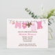 Den här söta inbjudan till Babysknappen innehåller rosa barnkläder och en nalle- och babyfilt på en garderob. Denna moderna och elegant duschinbjudan är perfekt för alla mamma. Vissa inslag av detta kort © BabyStar Design