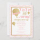 Guld glitter och rosa-babyduschinbjudan med guld glitter luftballong och rosa dammbakgrund.