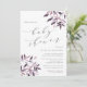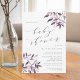Rustic elegant-babyduschinbjudan innehåller mjuk grått-text i blocket och kursiv text med kalligrafaccenter, med sprejning av vattenfärgsfall i hörnen i muterade skuggor av rosa, lavender och burgundy.