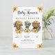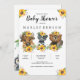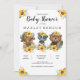Inbjudan till babyskor för solrosträd | Mall för inbjudan att bjuda på babydusch för trädjur i temat babydusch för gender-neutralt innehåller en handritad illustration av häcken, hjort, uggla, tvättbjörn, sjöutter och mycket mer.