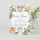 Inbjudan har din gäst med vår elegant och moderna små babyduschinbjudan till små skogar med gienery eucalyptus garland och vattenfärgade trädsdjur. Anpassa med babyduschdetaljer i enkel layout och handskrivet stil-teckensnitt för elegant.