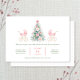 Bygg upp den festliga andan med denna rosa babyduschinbjudan, med två rosa vagnar och en underbar rosa och grönt Julgran.