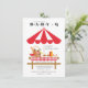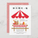 Unik kallduschinbjudan till grillbarn med ett rött och vitt paraply och en röd gingham tillbaka för en könsneutral babydusch. Besök vår butik för att se den här designen i rosa, grönt och blått för en tjej- och pojkdusch.