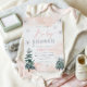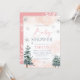 Vinterduschinbjudan till babyduschar med snöflingor gräs träd och en boho-design.