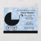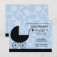 Den här söta Baby Shower-inbjudan väntar bara på att anpassas med dina detaljer. Den här blå och svarta moderna designen har ett motiv för barnvagn och en blommigt.