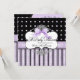 Den här inbjudan till babyvisningsprogrammet innehåller elegantens Fransk-skyltsnurrar, lavender- och tauppunkter i bakgrunden, ett hårt band och en vacker handmålad lavendar-båge. Allt är gjort av originalkonstverk av Audrey Jeanne Roberts. Resultatet är en vackert contemporary Baby enemble. På motsatt sida finns samma punkt mönster och en parentes som visar ett ställe för ditt baby-foto. Du kan enkelt lägga till ditt eget bild eller ändra meddelandet. DU KAN OCKSÅ UPPNÅ: