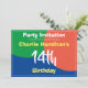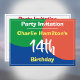 Inbjudan till en speciell födelsedagsfest med namn och antal år. Festinbjudan för en 14-åring. Inbjudan till 14-års födelsedagsfest.