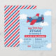 Hur dags flyter! Inbjudan är dina gäster på en party för födelsedagspojken med det blå och röda flygplanet som flyger mellan molnen födelsedagsfest inbjudan! På motsatt sida finns ett rött, blått och vitt lutat rand mönster. Anpassa enkelt med dina party-detaljer.