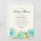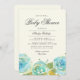 Dessa vackra inbjudningar till babyduschen har hand om färgade blommor i blått, grönt, guld och akvarium över en bakgrund av elfenbensfärgad färgad. Bakgrunden till färg kan anpassas om så önskas.