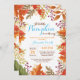 Inbjudan till barnskuret under hösten. Högre Pumpkin-Blommigt.Pojkbabyinbjudan. Orange Blue och Brown.