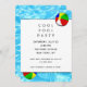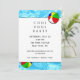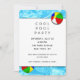 Coola bassäng party eller sommarfödelsedag inbjudan med badande bassäng och strandnära bollar för simma.