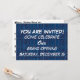 Använda EZ-mallen för att anpassa inbjudan med en blå, blå, subtil plaid-design. Lägg till en egen logotyp eller annan bild. Se till att ta bort bildmallen genom att välja alternativet Anpassa om du inte har någon bild att överföra.