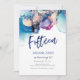 Modern 15:e födelsedagsinbjudan till Quinceañera med marina blåa, akvariga och rosa vattenfärger i abstrakt och en motsvarande baksida.