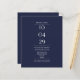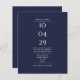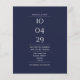 Ett modernt, minimalistiskt inbjudningsprogram för budgetbröllop som innehåller ditt speciella datum och bröllop-detaljer som finns i klassisk, chic-typografi på marinblå bakgrund. Designad av Thisisnotme©