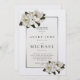 Den här enkla och elegant vattenfärgen har ivorianska och vita magnoliska blommar med sage och brons färgad löv som ramats in i gräns i silver färgad. Klicka på knappen anpassningsbar för att ändra meddelande, namn, adress och händelseinformation. Välj en annan bakgrund färg för att komplimentera ditt tema. Se till att byta färg på baksidan av kortet. Observera att ram inte är metalliskt.