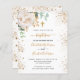 För aptism med 2 barn. En vit bakgrund som dekorerats med eukalyptus greenery, en vit ros, och guldfärgade löv och faux guld glitter faller ned. Anpassa och detaljer om barns namn och ceremoni. Svart och guldfärgad färgad brev. Könsneutralt. Baksida: vit bakgrund med droppar av guldfaux glitter