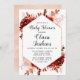 Rustic Beauty Blommigt Watercolor Bohemian Autumn eller Fall Design med handmålade blommor, Watercolor Paint Brush Strokes och Mjuka mängder färglös orange, rost, rött, Burgundy, Marsala och persikofärgat löv och löv. Med Hand plockade Line inslag, Swirly Hand Lettered Typsnitt och Ro Guld Geometric Hexagon Ram Shape Flicka Shower-inbjudningar! ~ Kolla min butik för att se hela bröllop-svit för den här designen!