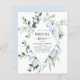 Budgeten Dusty Blue Blommigt Ro och Eucalyptus Botanical Grey Watercolor Vår eller Summer Bröllop Inbjudningskort för möhippa - innehåller vacker och elegant manustypografi med moderna tropiska botaniska blommor och grönenergi för den speciella Bröllopsdagen firande.
