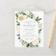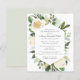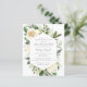 Elegant firande i en livinbjudan innehåller stora vita blommor som är kapslade i en grönt modern botanisk bladfilm. Den avlidnes namn är skriven i ett traditionellt manus. Hela texten kan enkelt redigeras för att skapa en personlig hågkomst.