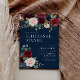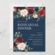 Boho Navy Burgundy och blommigt Rehearsal Middagsinbjudan. Denna inbjudan kännetecknas av boho burgundy och ro och blommor med två moderna högklassigt typsnitt som formar trenderna för dagens och morgondagens festliga händelser.