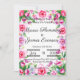 En vackert designad bröllopsinbjudan med sjudande blommigt-grafik. Utformningen har en slående rosa och lila blommor som ramar in texten och skapar en elegant och ett festligt utseende. Inbjudningstexten är skriven i en kombination av lekfullt och klassiskt typsnitt, vilket förbättrar dess inbjudande och sofistikerade utseende.