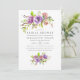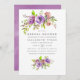 Lila och rosa ros och blommigt inbjudningskort för möhippa med peonier med accenter av korall, plommon och sage-grönt.