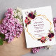 På framsidan: En inbjudan till en 90:e födelsedagsfest för elegant. En chic vit bakgrund med faux guld geometric ram. Dekorerad med mörk burgundi och rosa vattenfärgade blommor, fjädrar från ro och boho stil. Mallar för uppgifter om namn och party. Namn är skrivet med ett handskript stil, burgundy färgad brev. Bakåt: färgadens bakgrund.