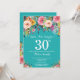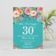 Inbjudan till Blommigt Överraskare 30års födelsedag för kvinnor. Vattenfärgsblomma Blommigt blomma. Teal Aqua Turcos bakgrund. Rosa, Gult, Orange, Lila blomma. Vuxen födelsedag. 13:e 15:e 16:e 18:e 20:e 30:e 40:e 60:e 70:e 80:e 90:e 100:e, alla åldrar. Om du vill göra ytterligare anpassningar klickar du på knappen Anpassa och användor verktygen som är utformat för att ändra mallen.