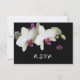Enda ord som beskriver blommigtens eller osans bröllopsinbjudan. Utformningen har två vackra tropiska orkidéer av gult med en lila- eller fuchsia-mittpunkt på svart bakgrund. Initialerna kan anpassas till designen. Baksidan har orkidéerna i en muterad mode så att dina gäster kan tillhandahålla osa information. Copyright henishouseofpaper