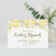 Ett firande i vår är överflödigt på denna vackra inbjudan till Påsk Brunch med blommor, knoppar och löv från gult och guld. oliv grönt mörk i vit, kursiv text lägger till charm och roligt. Samordna gult mönster i rand på baksidan. Varje rad kan anpassas efter dina behov i kostym.