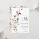 Inbjudan till blommigt White Baby Shower. Den här inbjudan till babyduschen i snyggt och elegant innehåller fantastiska, handmålade, vildblommor som ordnats som en underbar bukett och kalligrafi av elegant som är perfekt för vår, sommar eller fallbabyduschar. I baksidan finns ett samordnat vismiskt mönster. Sök efter matchande objekt i inkasseringen White Boho Wildblomma Baby Shower.